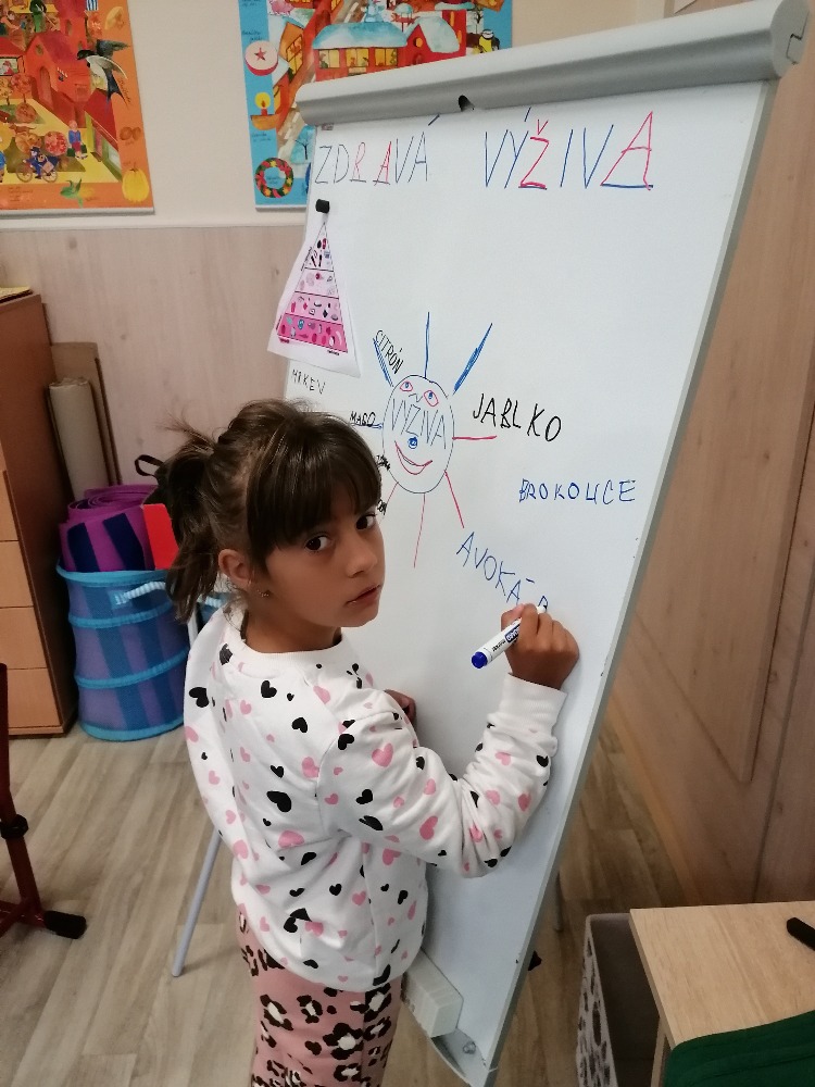 Všechny zdravíme z projektového středečního dne 4. října pod názvem ZDRAVÁ STRAVA. Do třídy k nám zavítala paní Střížová, která nám doporučila, jaké potraviny a jídlo je pro nás žáčky zdravé a proč. Všechny činnosti, hry, aktivity byly pro nás zábavné. Dokonce nám připravila zdravé palačinky, rybí pomazánku s chlebem na svačinu. Ještě teď se olizujeme, jak nám všechno chutnalo. Nakonec jsme vytvořili zdravý potravinový talíř z papíru a naučili se zpaměti krátkou říkanku k ovoci nebo zelenině. Moc se nám to líbilo.