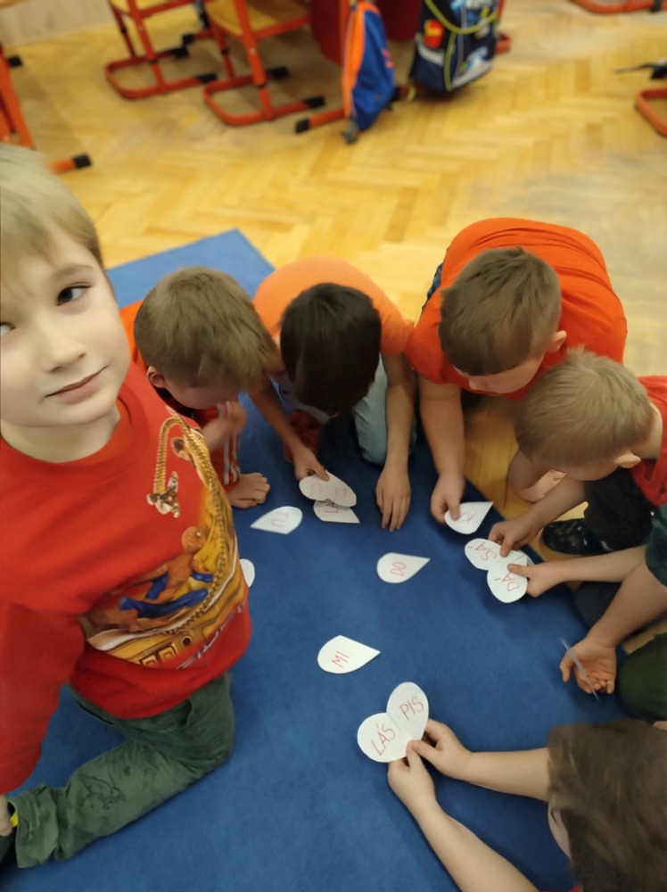 Valentýnský svátek v 1. třídě proběhl ve znamení kamarádství. Školáci se zamýšleli, jaký by měl být správný kamarád, zahráli si hry na upevnění vztahů se spolužáky.